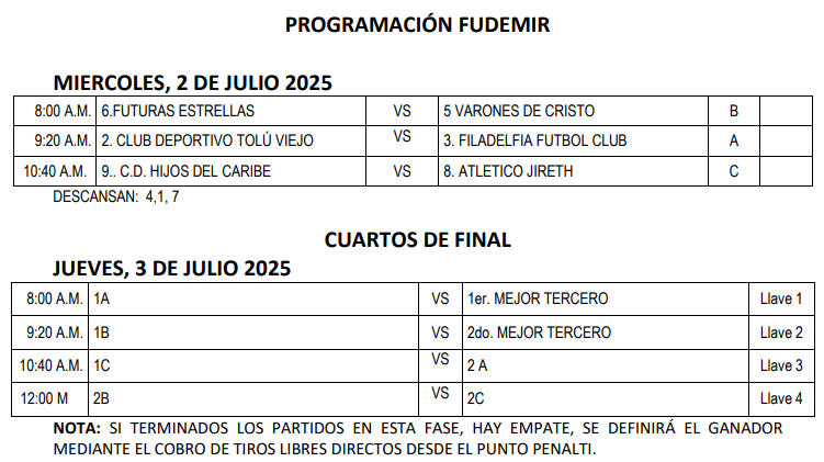 En Tolú juegan nueve equipos divididos en tres grupos. Los cuartos de final serán mañana, semifinales el viernes y la final el sábado. Ayer, Futuras Estrellas igualó a Varones de Cristo en el primer lugar del Grupo, con 3 puntos, al vencer 2-0 a Sport Tolú Felix del Caribe, con dos goles de Deimar Silgado.