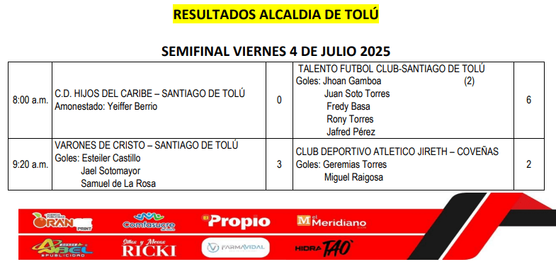 9:20 A.M. TALENTO F.C. DE SANTIAGO DE TOLÚ VS VARONES DE CRISTO DE SANTIAGO DE TOLÚ