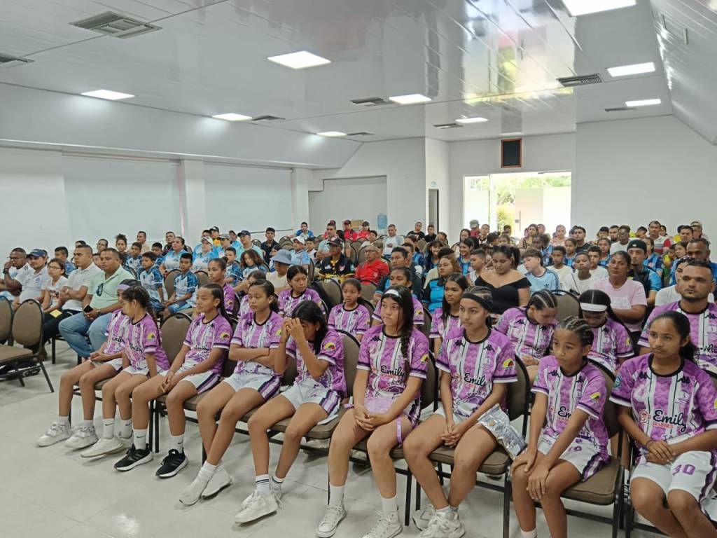 Álvaro Herrera, de Fudemir, entrega reconocimiento a la entrenadora Sandra Narváez