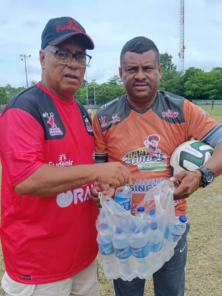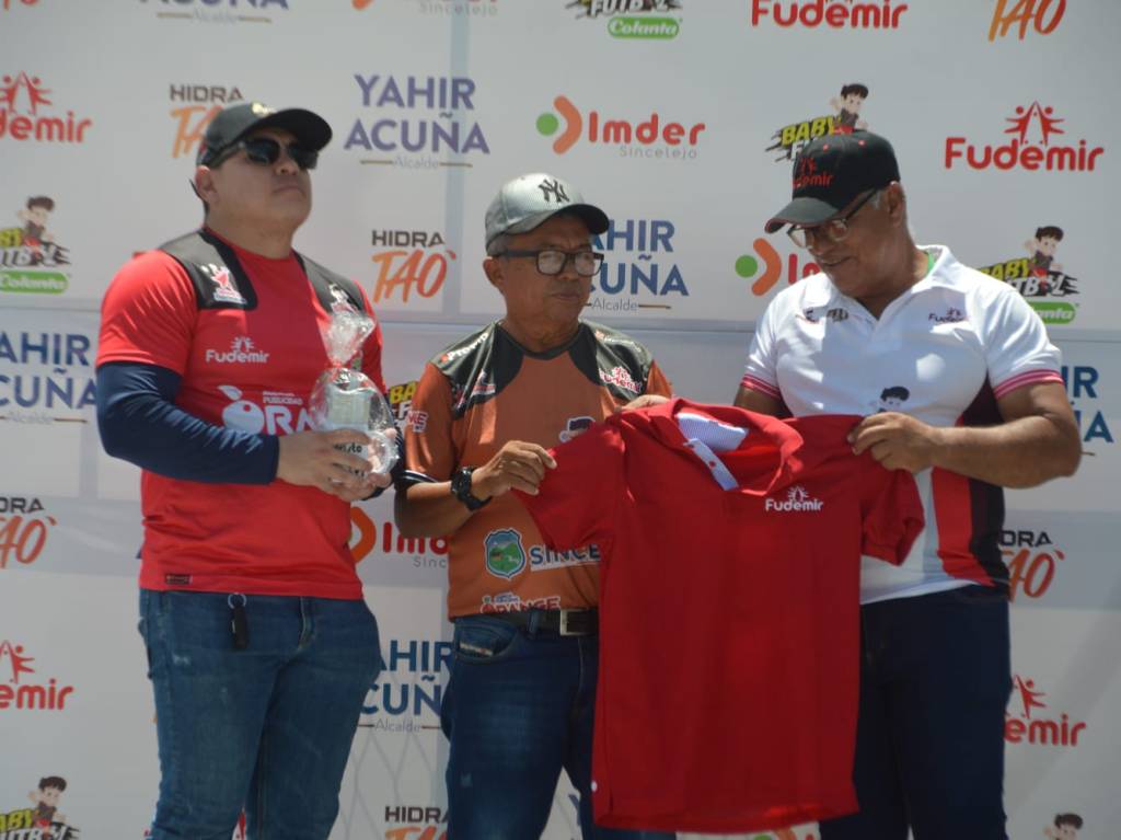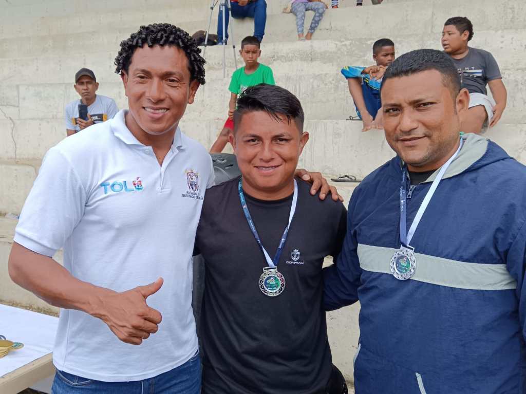 Álvaro y Ever Herrera, de Fudemir, entregan reconocimiento al entrenador Cristo Méndez